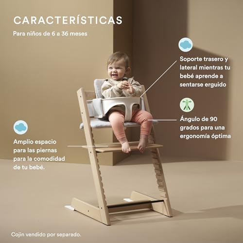 Trona Tripp Trapp de Stokke, Natural – Incluye Silla + Baby Set 2 para Niños de 6 a 36 Meses – Ajustable, Ergonómica y Fácil de Limpiar
