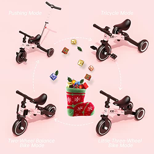 XJD 4 en 1 Triciclo Evolutivo de Bebé, Triciclo para Niños de 1-3 años, Triciclo a Bicicleta con o sin Pedales, Triciclo Bebé con Asiento Ajustables, Transformable (con Varilla de Empuje,Rosa)